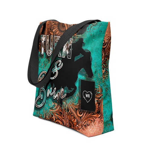 Turquoise Trails Turn & Burn Barrel Racing Cowgirl Tote bag